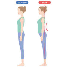 この姿勢は腰の反りが少なくなるため、一見楽に見えるのですが、背骨全体のバランスが崩れるため、首こりや背中の疲れを感じやすくなります。